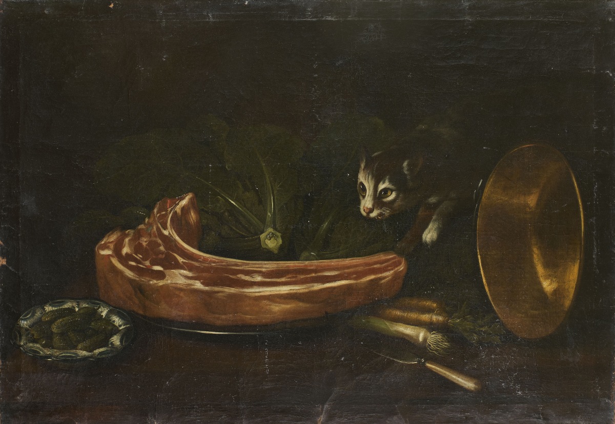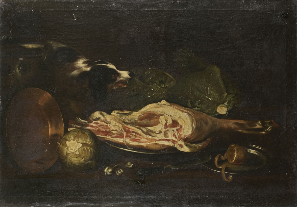 Nos tableaux peuvent être rapprochés de celui de La Viande de boucherie avec chien et chat, onservé au Louvre (Toile, 113 x 149 cm, signé et daté). Ils sont également proches de la Nature morte aux volailles, légumes et pièce de viande qui était chez Lampronti à Rome en 1990.
