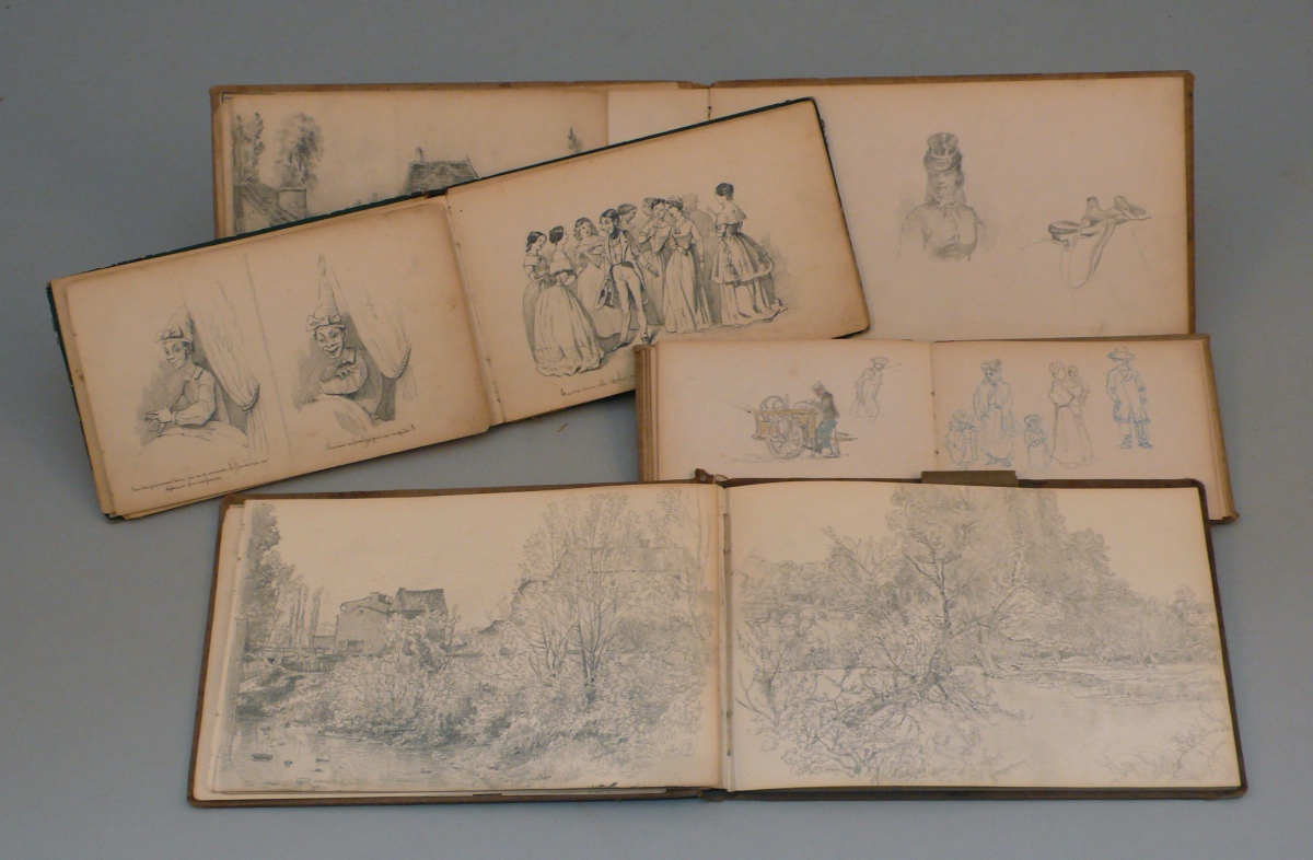 Carnet comprenant 21 dessins au crayon et aquarelle.