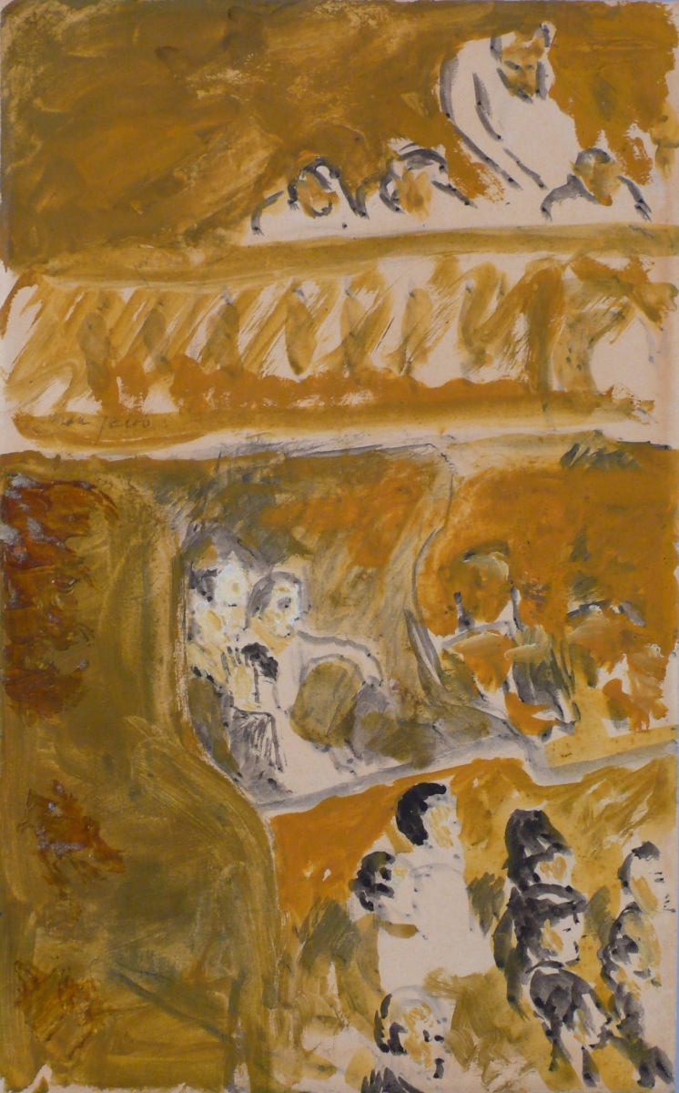 Gouache aquarellée signée en haut à gauche. Inscription manuscrite au verso : " Autre étude de théâtre jaune