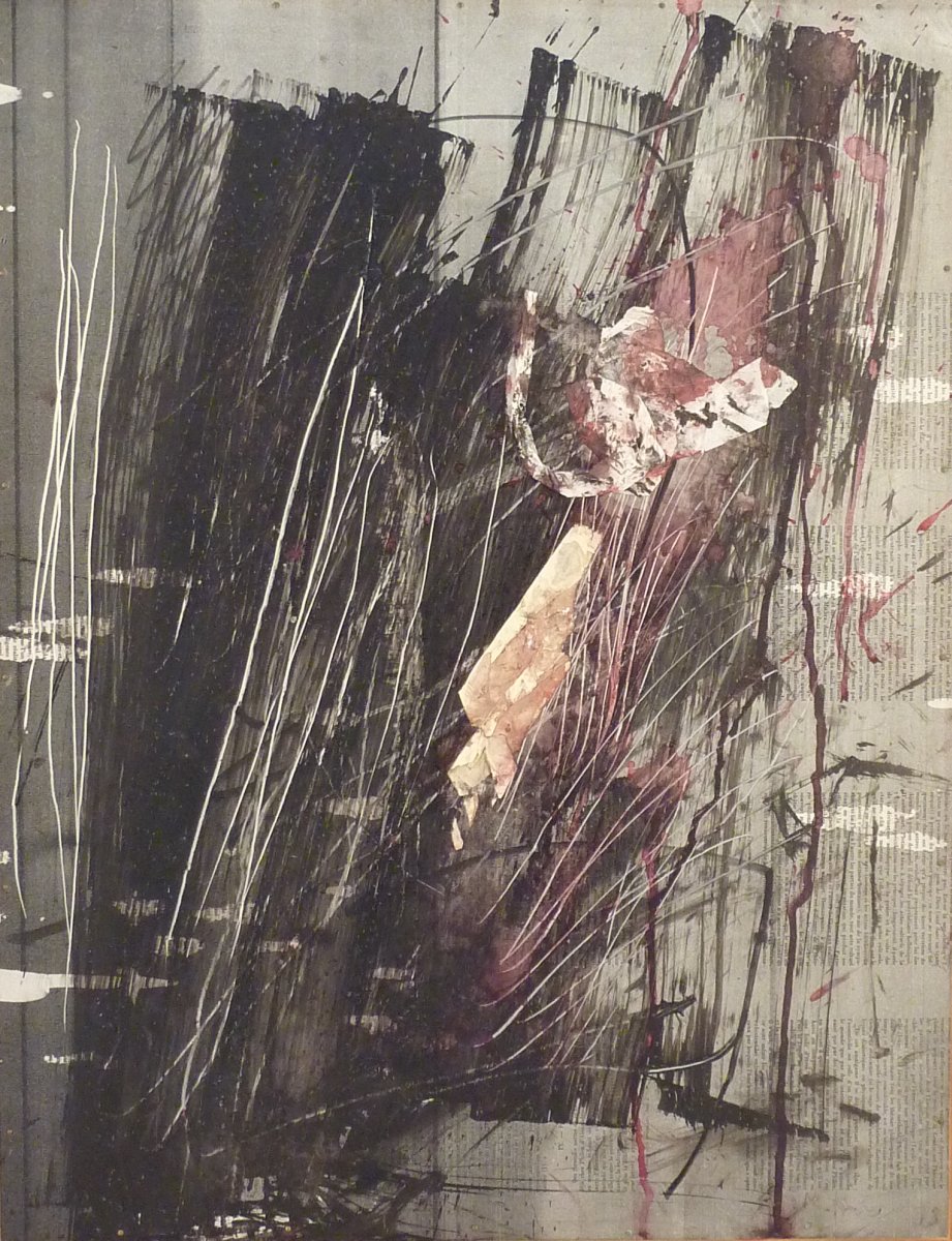 Technique mixte et collage sur matrice d'imprimerie, signée en bas à droite et datée 93.