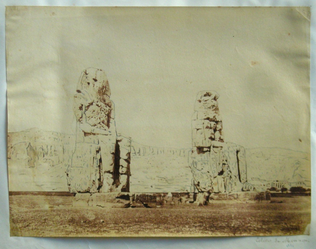 De nombreuses épreuves d'Égypte, aux faibles tonalités, ont été repassées à la mine de plomb afin de souligner les contours des monuments et des sculptures, quelques-unes sont découpées dans la partie supérieure selon les contours des monuments.