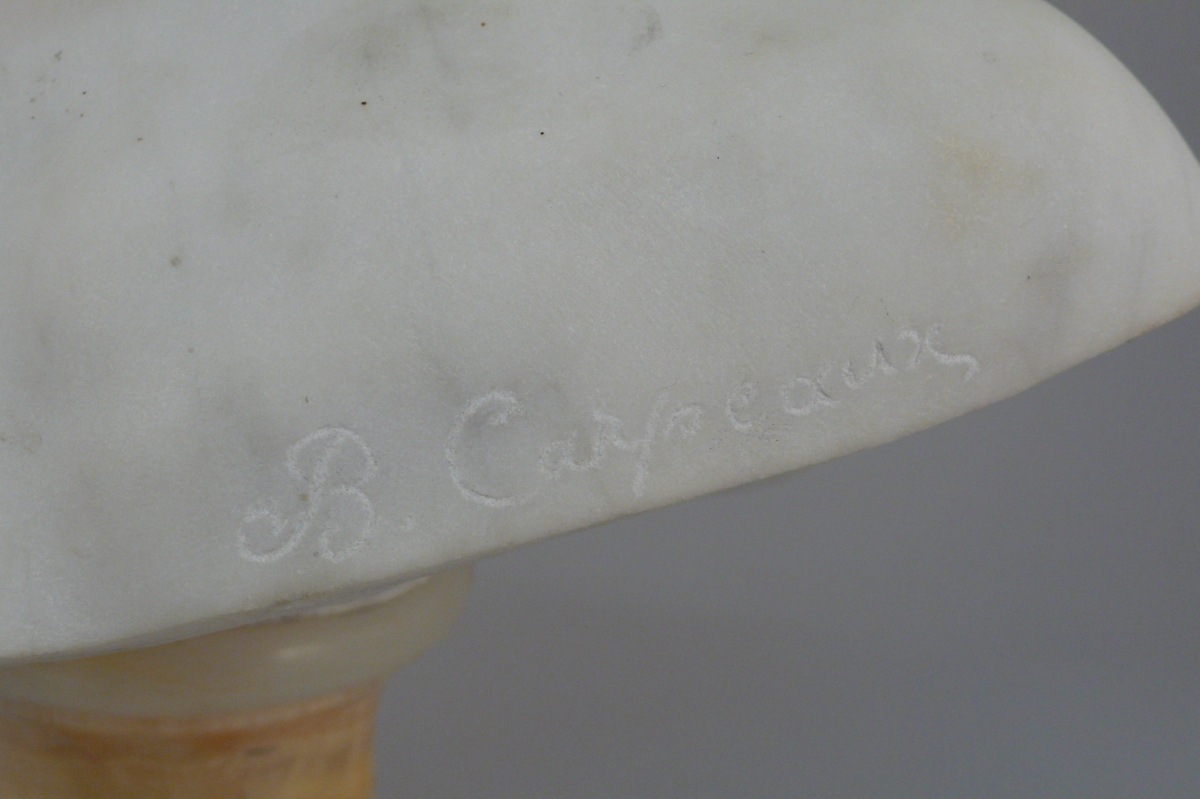 Marbre blanc sur piédouche d'onyx. Signé au dos.