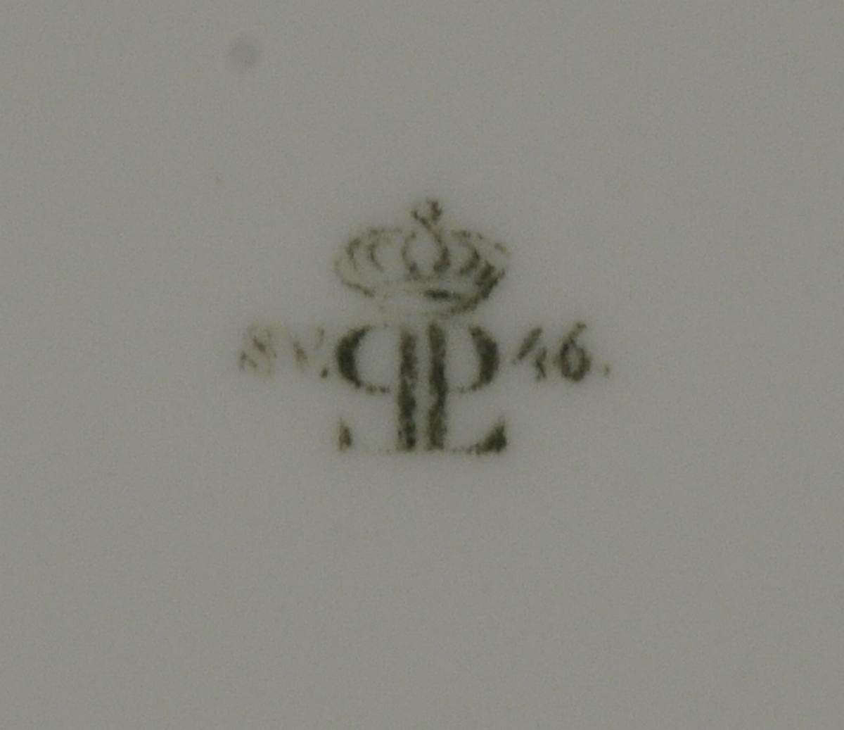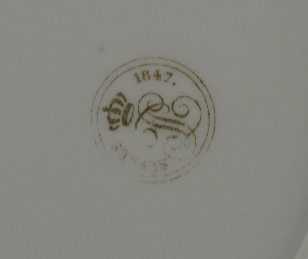 Sèvres. Cachet à l'or de la manufacture de 1847 et de Louis-Philippe de 1846. Marque en creux "A.C. 46.", "I.L.", et peinte "29. 7.. 46. ".