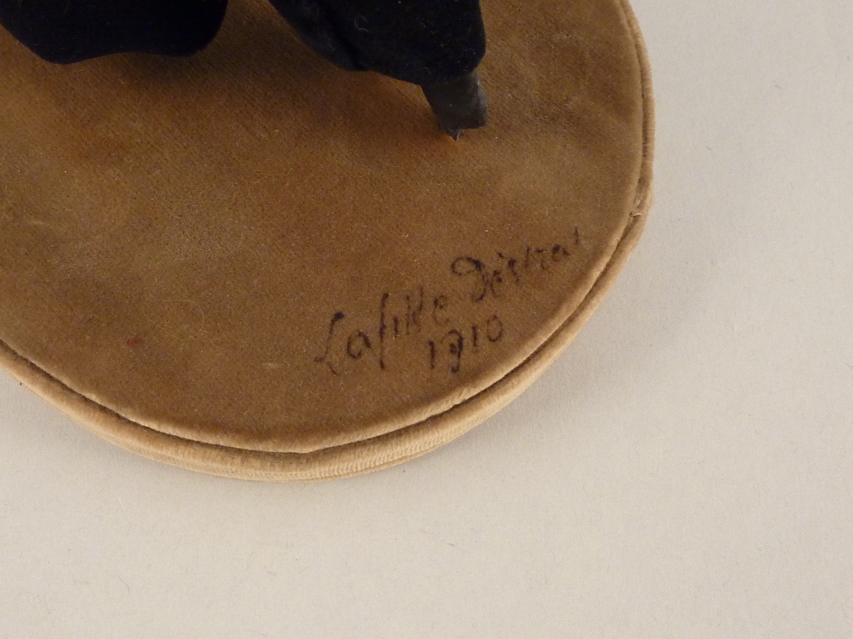 Le couturier Henry à la Pensée, situé à l'entrée de la rue du Faubourg Saint-Honoré, commande aux demoiselles Lafitte-Désirat cet ensemble de huit mannequins-poupées de présentation. Signés avec le