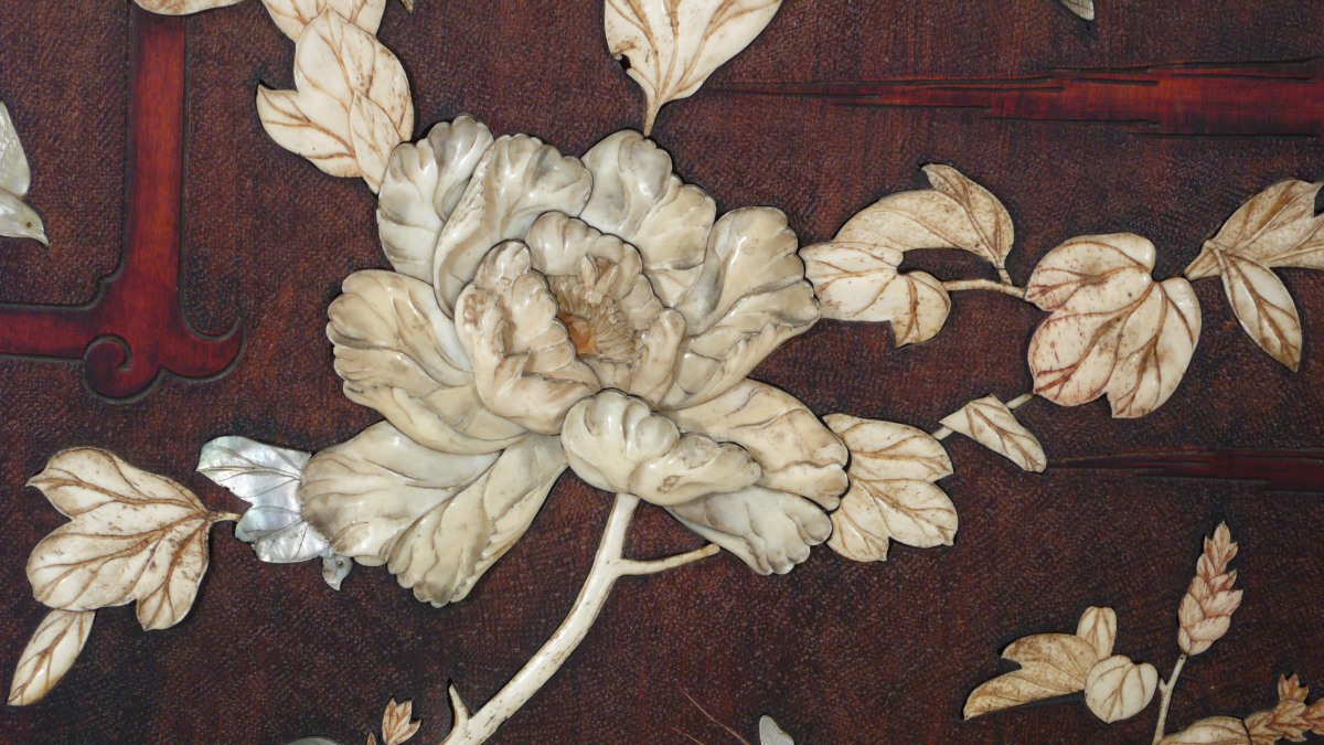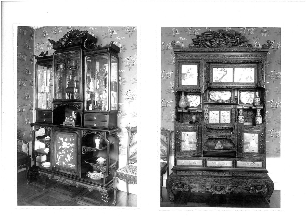 Oeuvre à rapprocher du travail de Gabriel VIARDOT et notamment d'une petite vitrine conservée dans les collections du Musée d'Orsay et d'une armoire au dragon à incrustations de nacre conservée au Musée des Arts Décoratifs. Ébéniste parisien du faubourg Saint-Antoine, Gabriel VIARDOT (1830-1906) produisait des meubles librement interprétés du mobilier extrême-oriental et adaptés au goût européen.