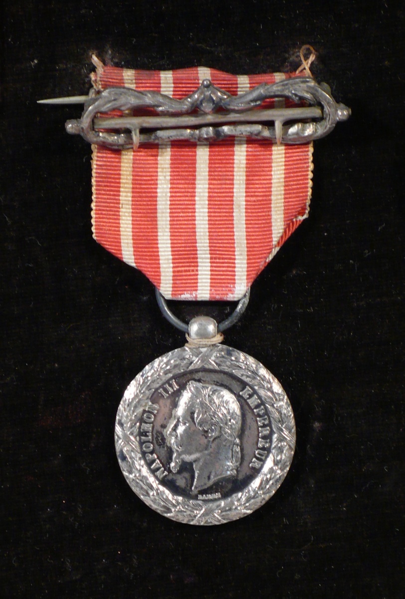 France - Médaille commémorative de la campagne d'Italie de 1859 par Barre, en argent, ruban avec agrafe de suspension en argent de type britannique.