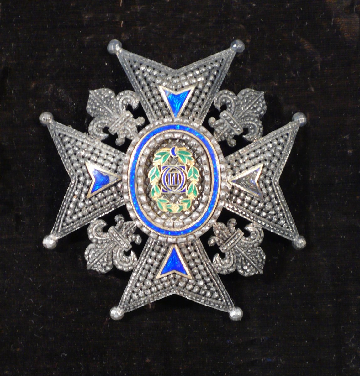 Espagne - Ordre de Charles III, plaque de commandeur, en argent et émail (éclats), les branches travaillées en pointes de diamant repercées.
