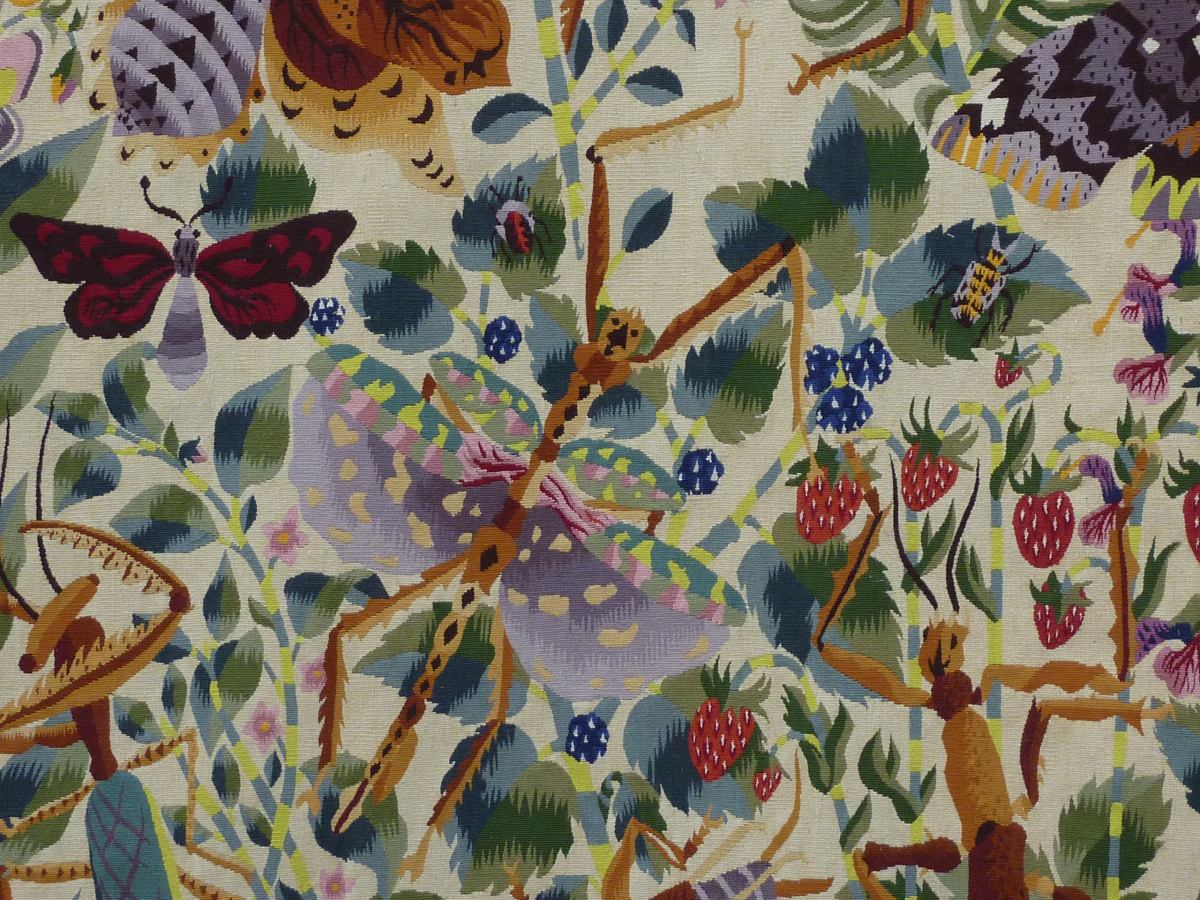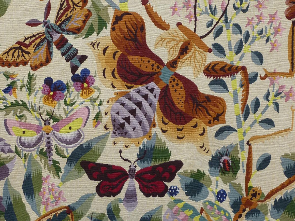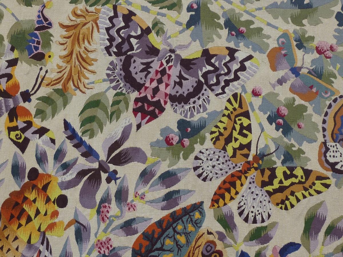 TAPISSERIE d'AUBUSSON par René PERROT (1912-1979).Papillons et fruits.Signée en bas...