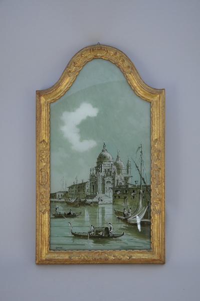 FIXÉ sous verre en camaieu de gris représentant une vue de Venise.