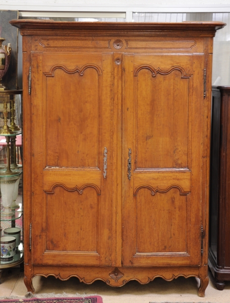 ARMOIRE en bois fruitier mouluré et sculpté ouvrant par deux portes, la traverse inférieure chantournée.