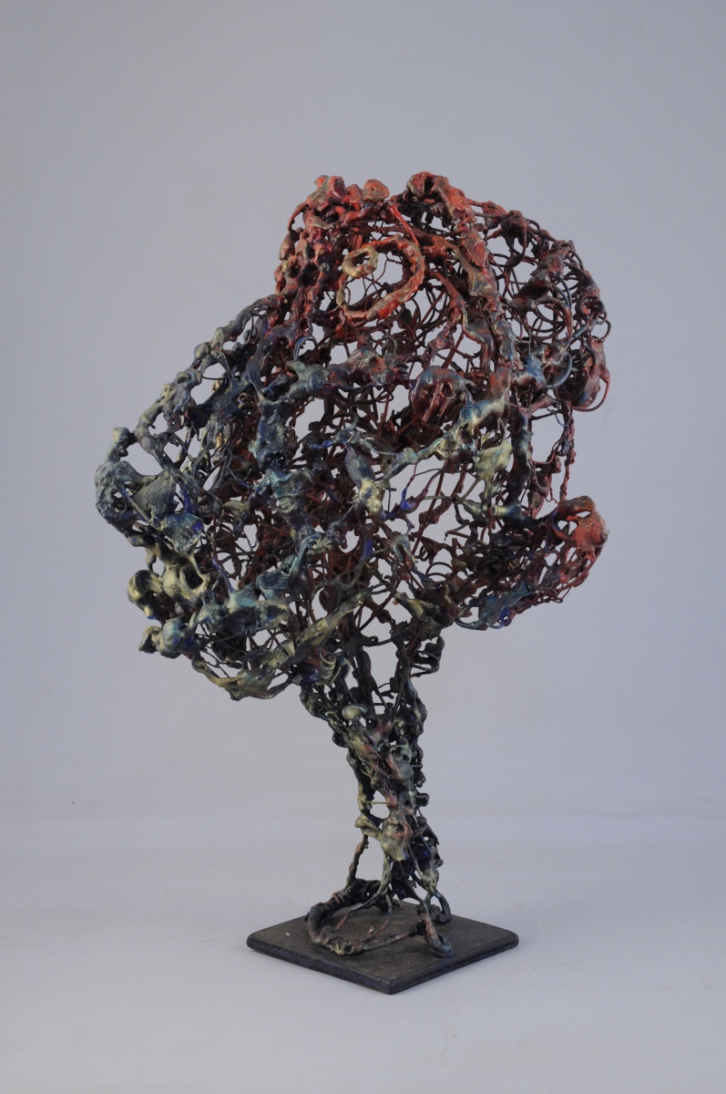 Roger CHOMEAUX, dit CHOMO (1907-1999)TêteSculpture en grillage, plastique fondu et...