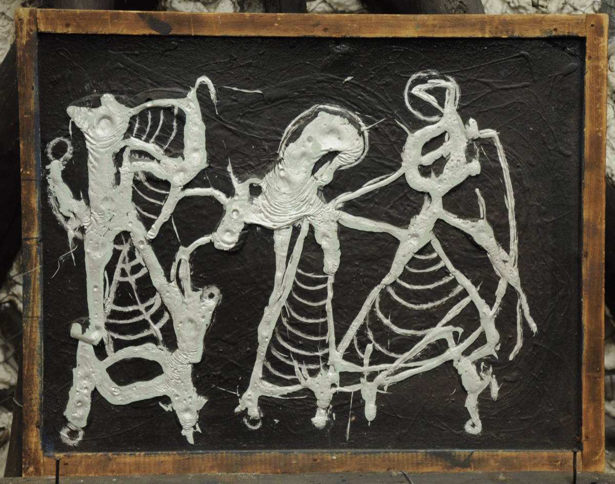 Roger CHOMEAUX, dit CHOMO (1907-1999)Trois êtres chimériquesEnduit et peinture dripping...