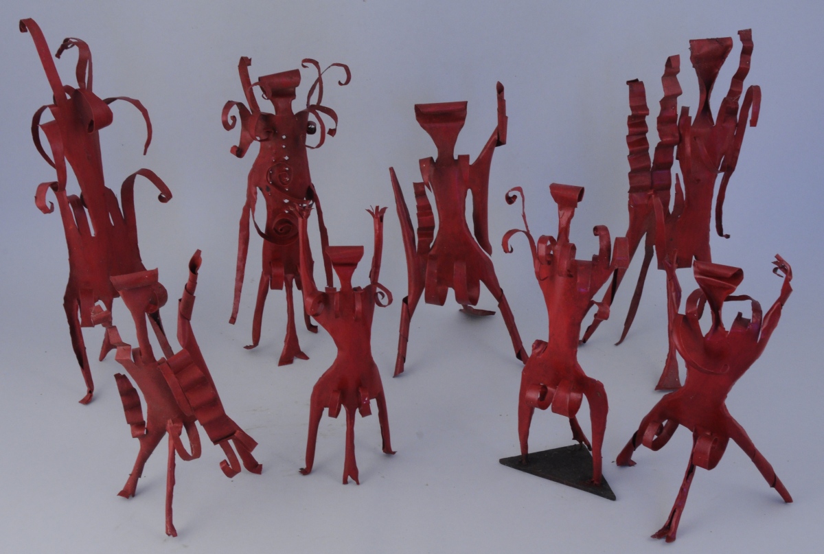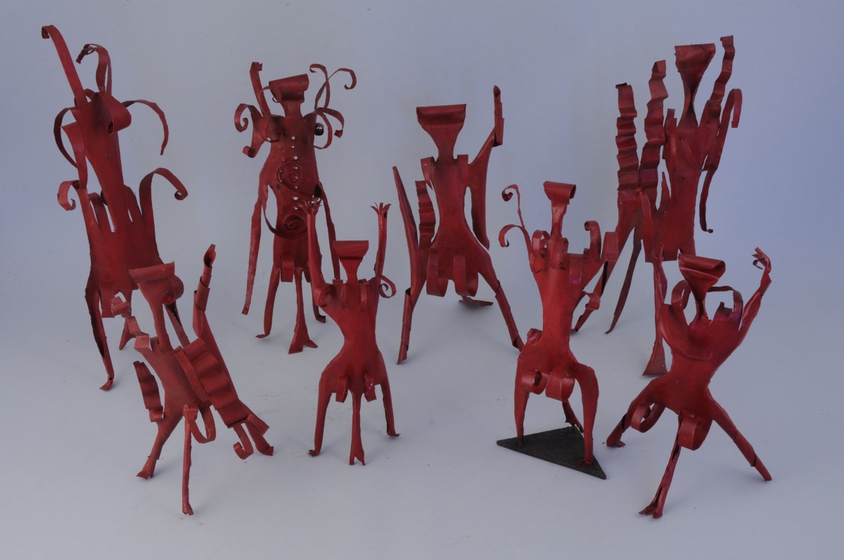 Roger CHOMEAUX, dit CHOMO (1907-1999)Orchestre, AlunisHuit sculptures en tôle peinte...