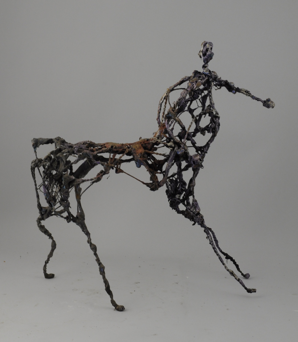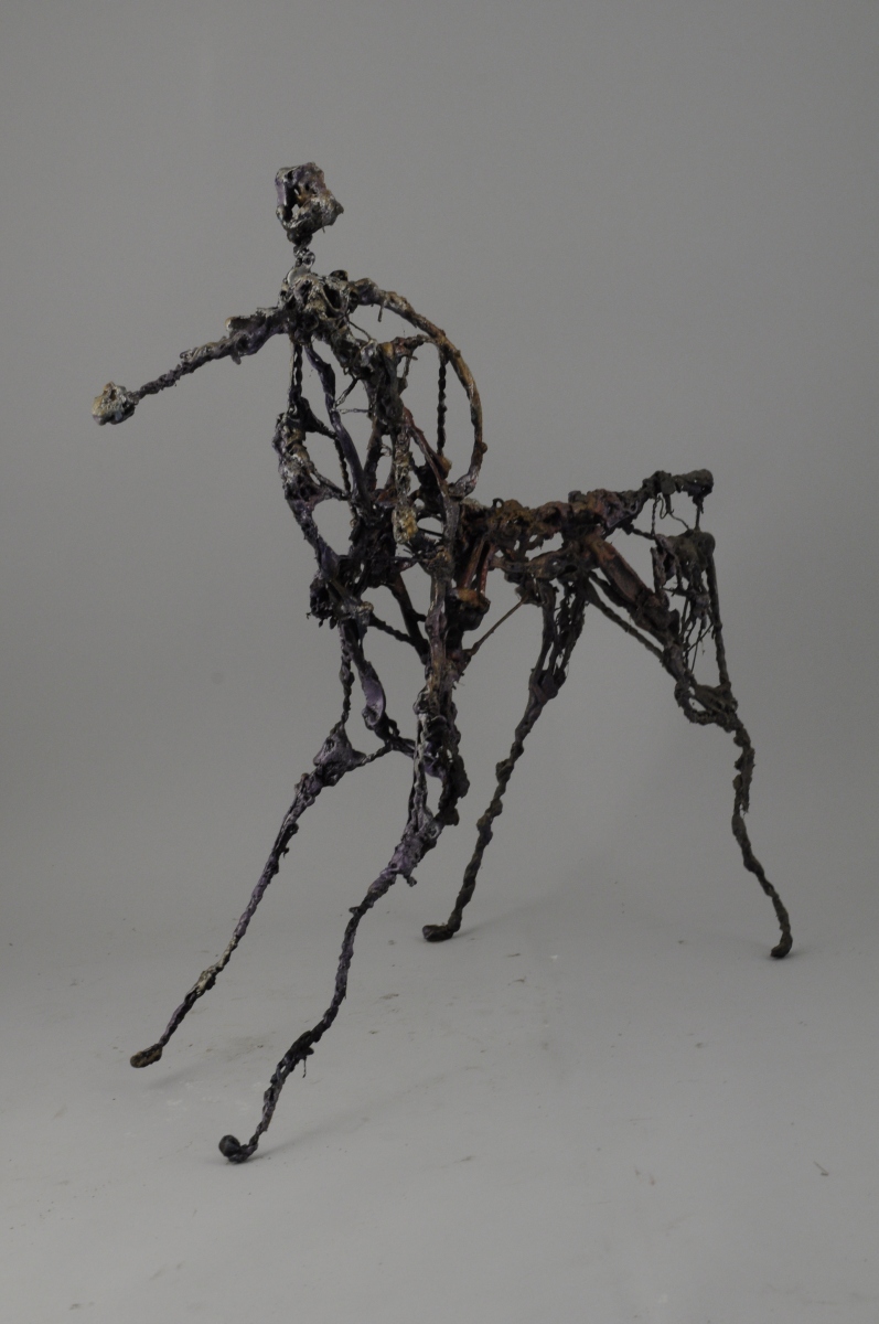 Sculpture en tige de fer, plastique fondu et incrustations diverses