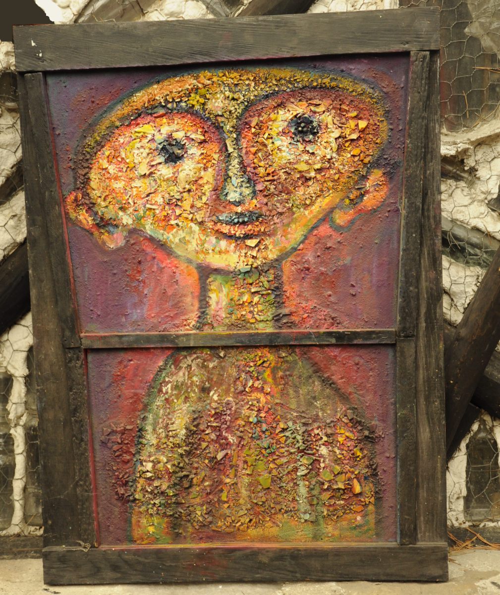 Roger CHOMEAUX, dit CHOMO (1907-1999)Personnage souriant dans un cadre fenêtreAcrylique...