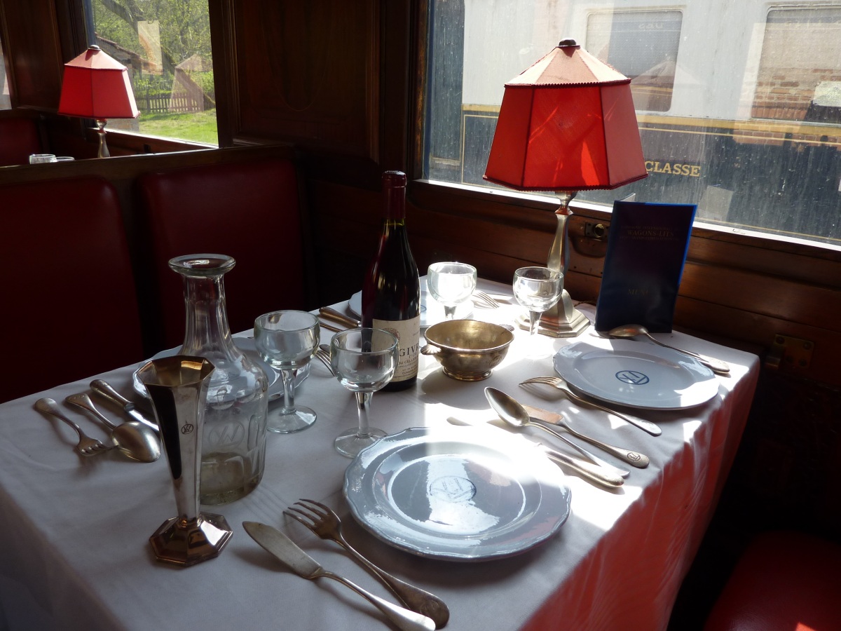 Ce wagon est vendu avec une partie de son matériel de table, datant de 1928, dont :
