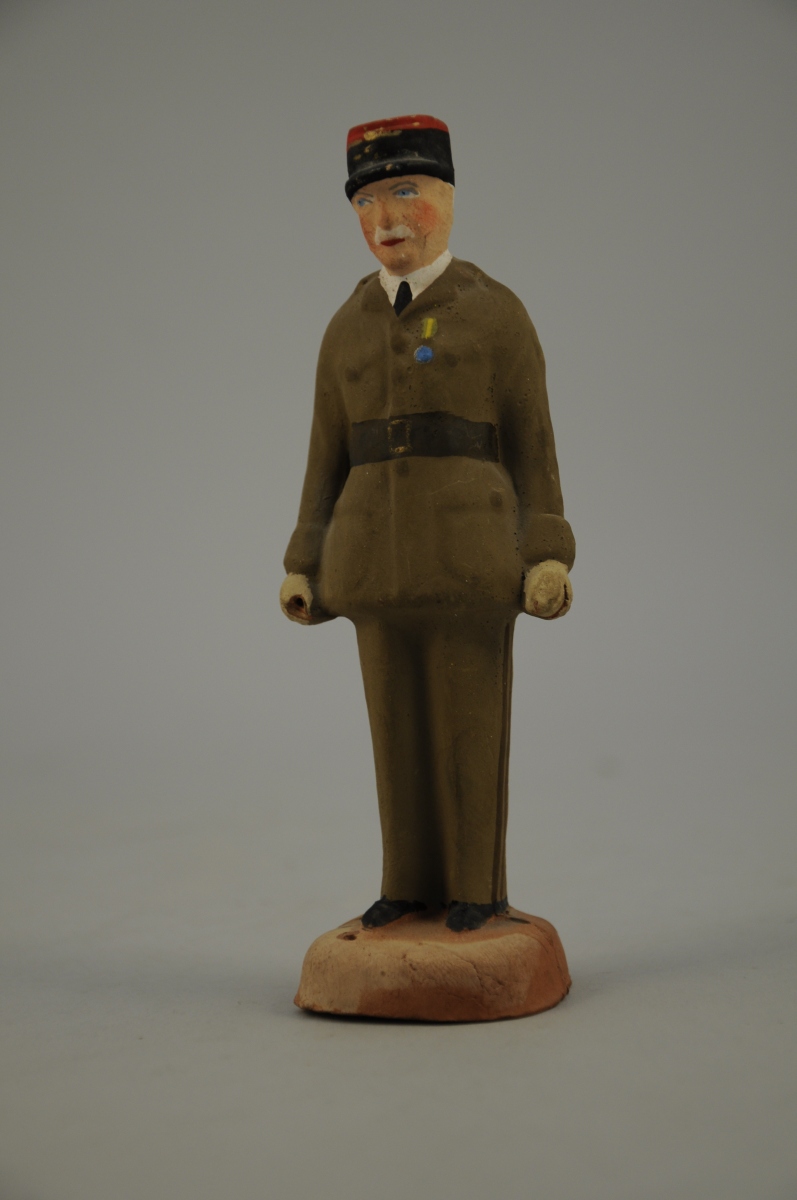 PÉTAIN Philippe. Statuette en terre cuite peinte, en uniforme avec la médaille militaire.