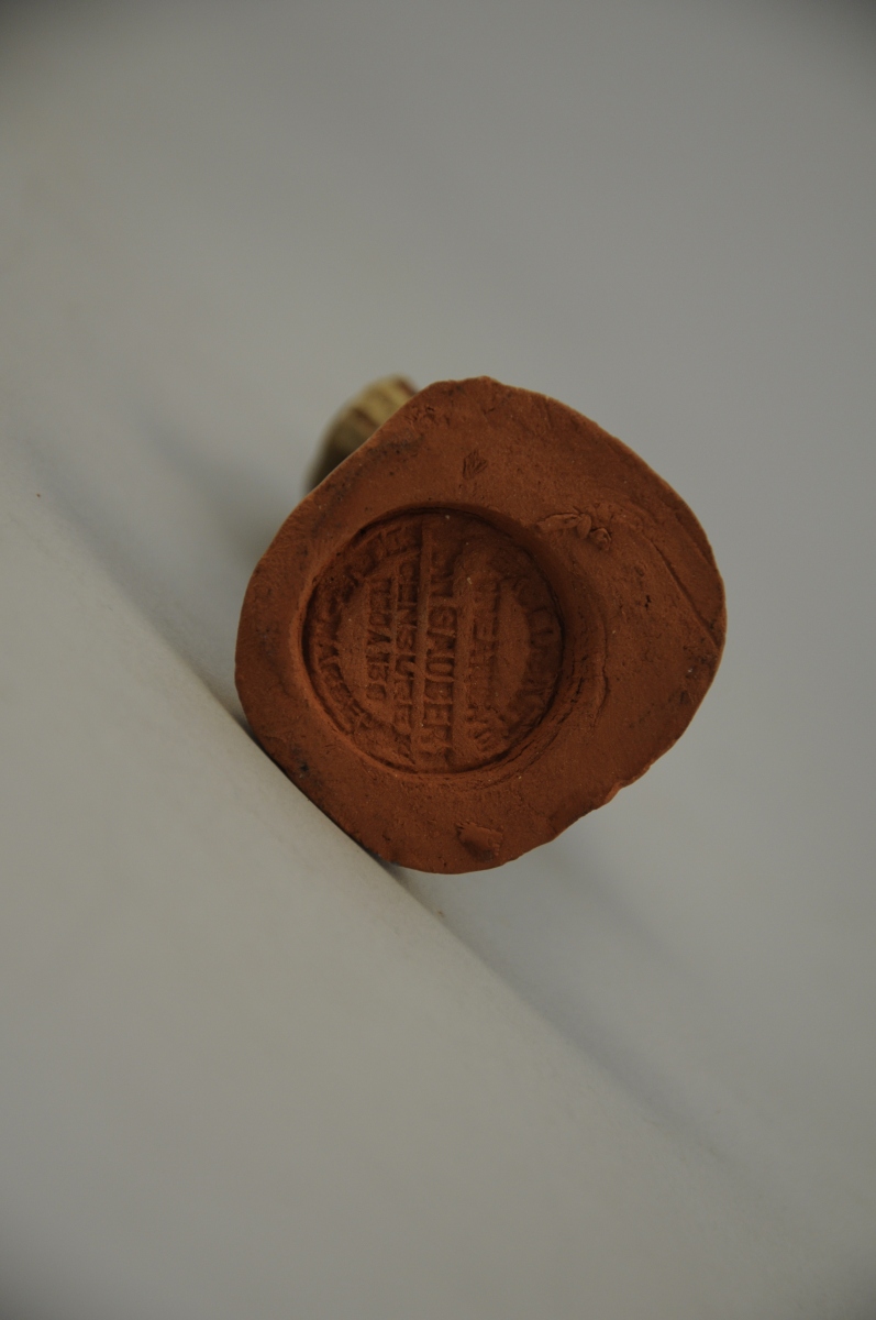 Tampon creux marque : "...création...GAUBERT censure..." Haut. 14 cm. (petits accdts. main)