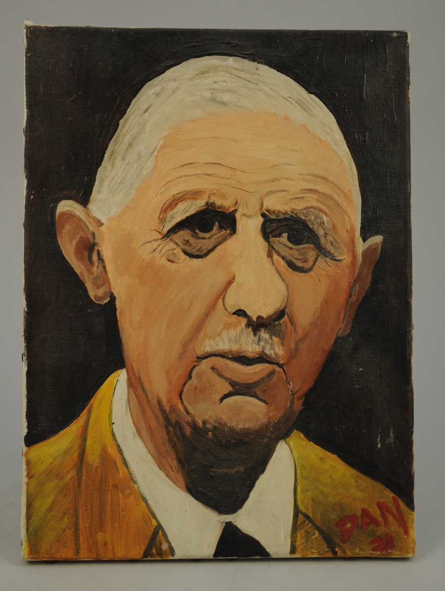 DAN. Portrait de Charles de Gaulle. Toile signée en bas à droite. 33 x 24 cm.