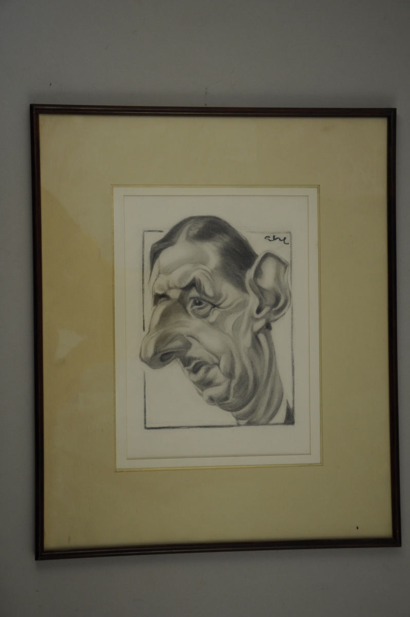 Raoul CABROL (1895-1956). Le Général de Gaulle. Caricature au fusain signée en haut à droite. 30 x 22 cm. Provenance : vente de Dessins et aquarelles du 10 mars 1984 par Me Rogeon à Paris, n°104.