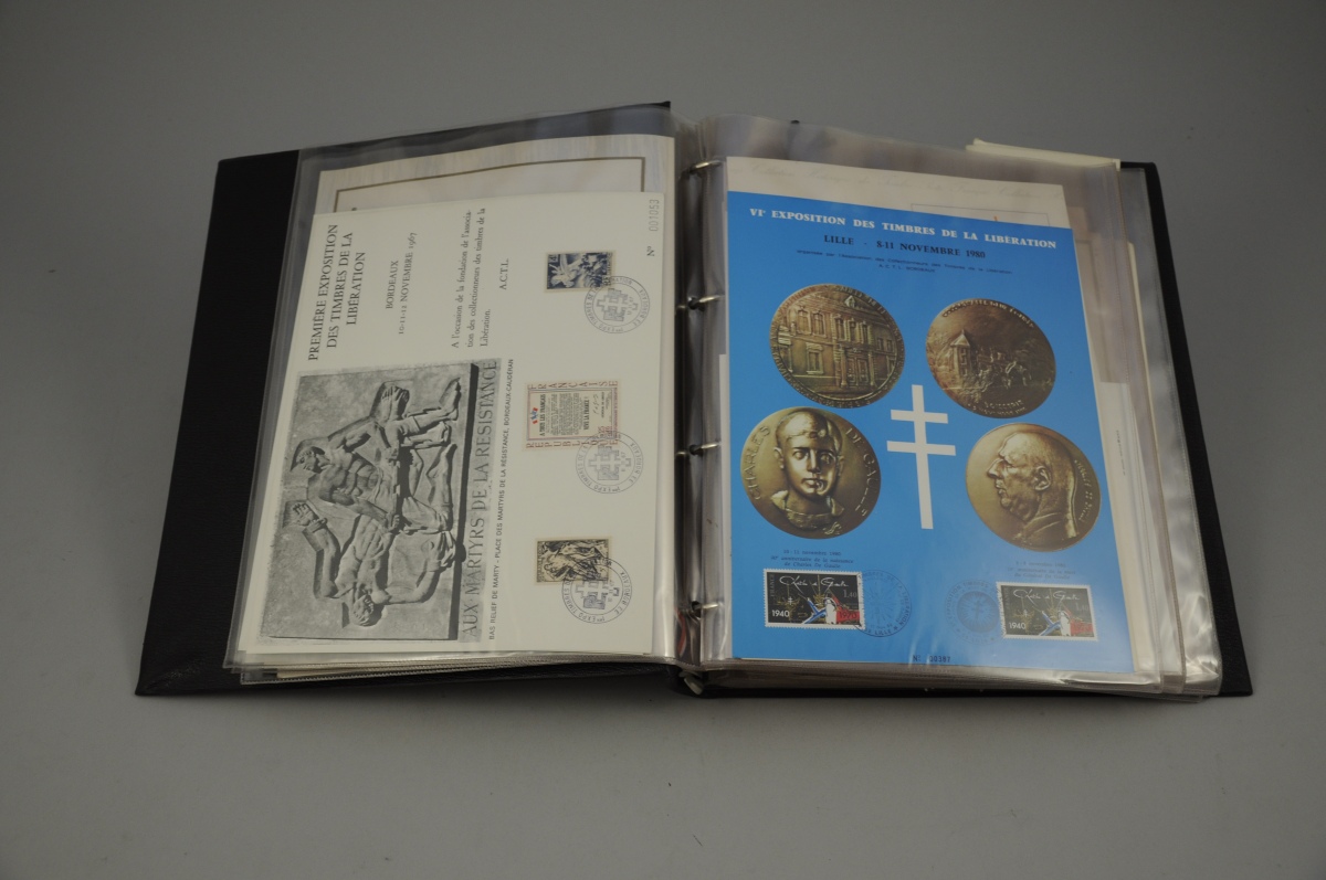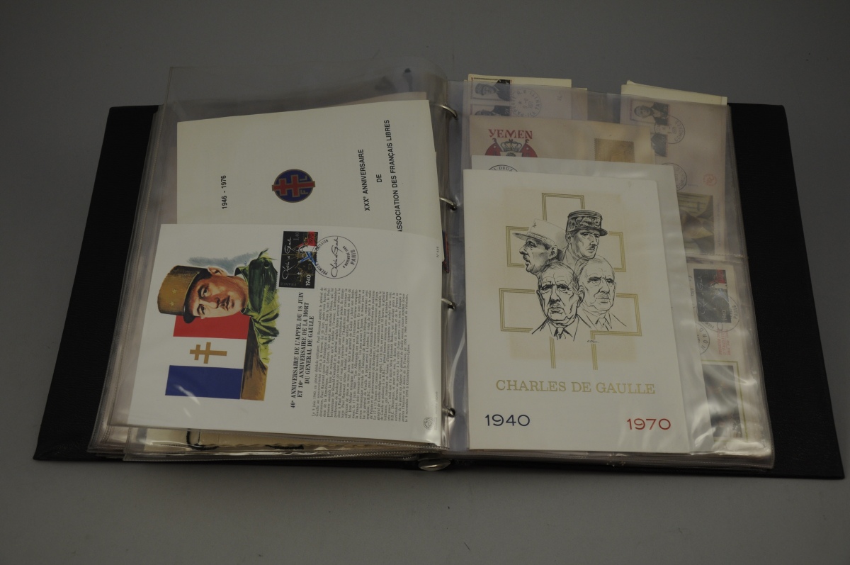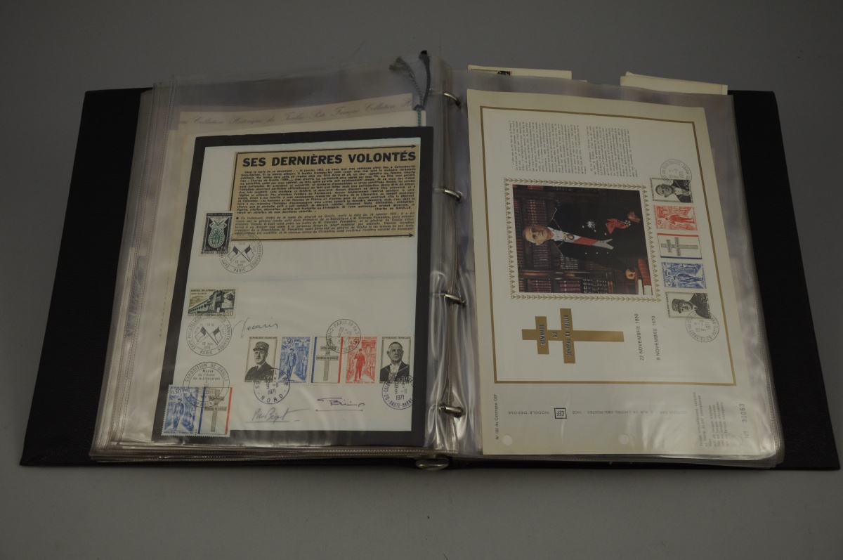 CLASSEUR PHILATÉLIQUES : IN MEMORIAM. 21 pochettes comprenant enveloppes premier jour et documents, etc.
