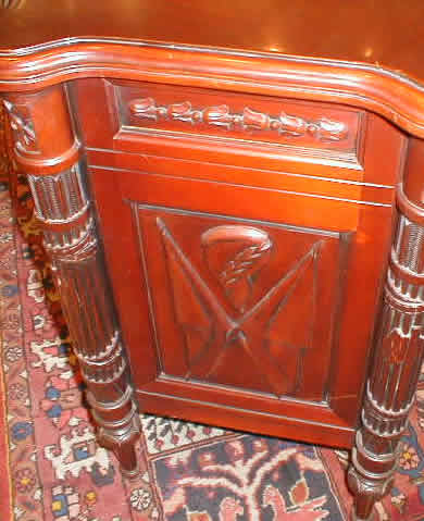Inspiré d'un modèle de Beneman pour le cabinet du Conseil de Louis XVI, au château de Compiègne, dans la structure des montants aux faisceaux. Meuble conservé au château de Fontainebleau.