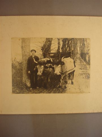 SCÈNES DE LA VIE RURALE. Réunion de photographies anciennes représentant une scène de marché (Romorantin ?), le bouvier et son attelage, et le château de Saint-Aignan dans le Loir-et-Cher.