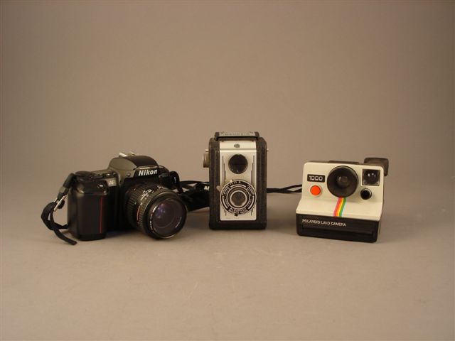 Ensemble de TROIS APPAREILS PHOTOGRAPHIQUES comprenant un NIKON F-601 avec zoom Nikkor AF 35-70 et courroie, un POLAROÏD 1000, un ALSAPHOT DAUPHIN I 6x6, boîtier métal avec objectif Boyer Menix 11/8, obturateur à deux vitesses.