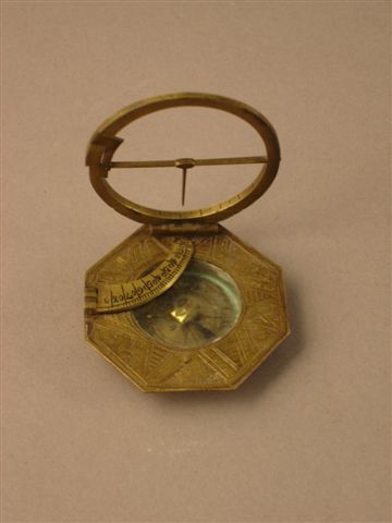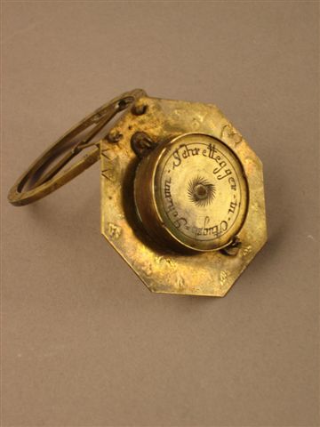 INSTRUMENT SCIENTIFIQUE de forme octogonale en laiton gravé composé d'une boussole avec cadran solaire. Gravé au revers "Johann. Sembrettegger. (?) in. Augsb".