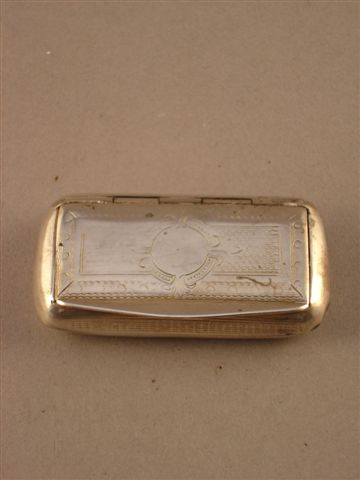 TABATIÈRE en argent, ornée d'un cartouche et d'une frise alternée de motifs géométriques sur le couvercle.
