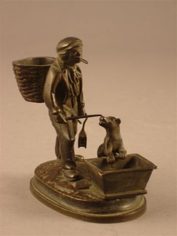 HOMME portant une hotte et son chien. Bronze patiné. XIXème siècle.