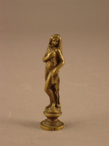 FEMME vêtue à l'antique en bronze à patine dorée. Socle ovale. XIXème siècle. Haut. 8,5 cm.