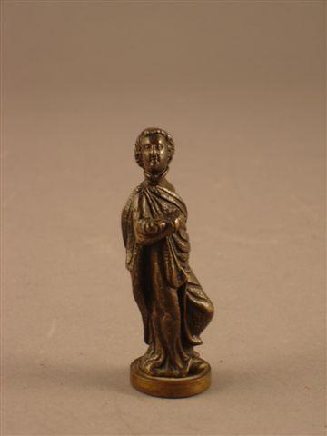 HOMME vêtu à la romaine. Bronze à patine brune et dorée. Socle circulaire.