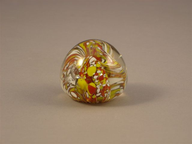 PRESSE-PAPIERS à décor géométrisant de larges godrons blanc et jaune orangé.