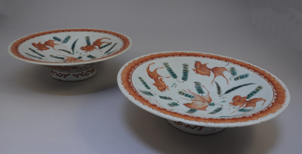 Paire de BOLS TRONÇONNIQUES en porcelaine à décors de pèches....