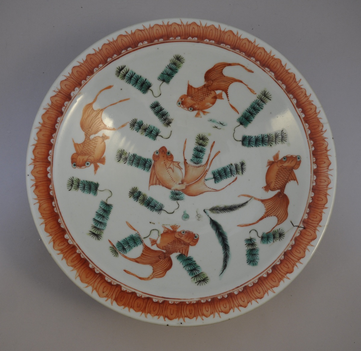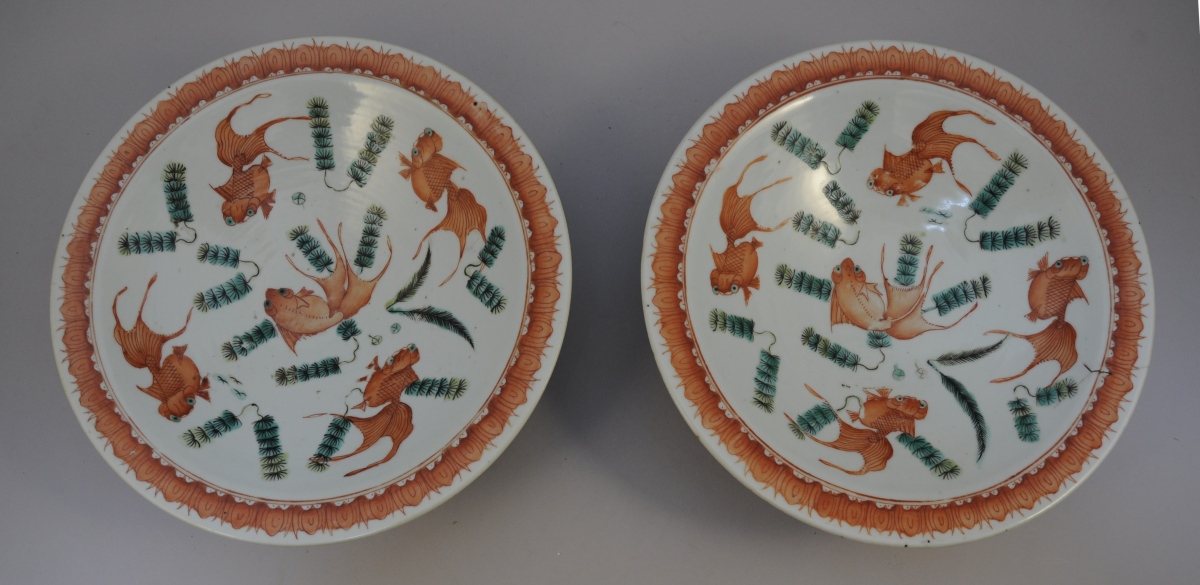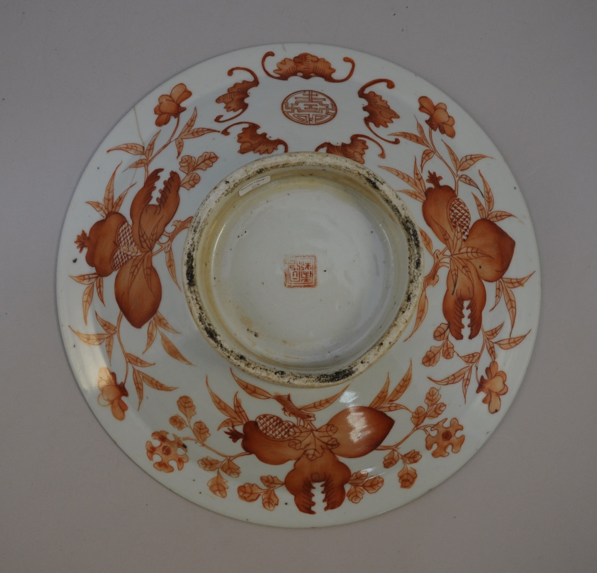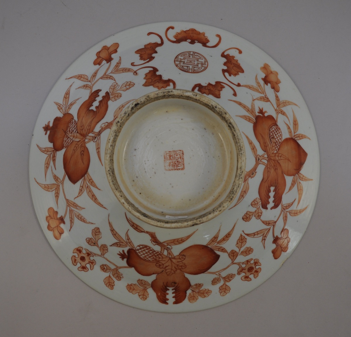 Paire de BOLS TRONÇONNIQUES en porcelaine à décors de pèches. Chine. XXème. Haut. 8 Diam. 30 cm (léger fêle à une aile)