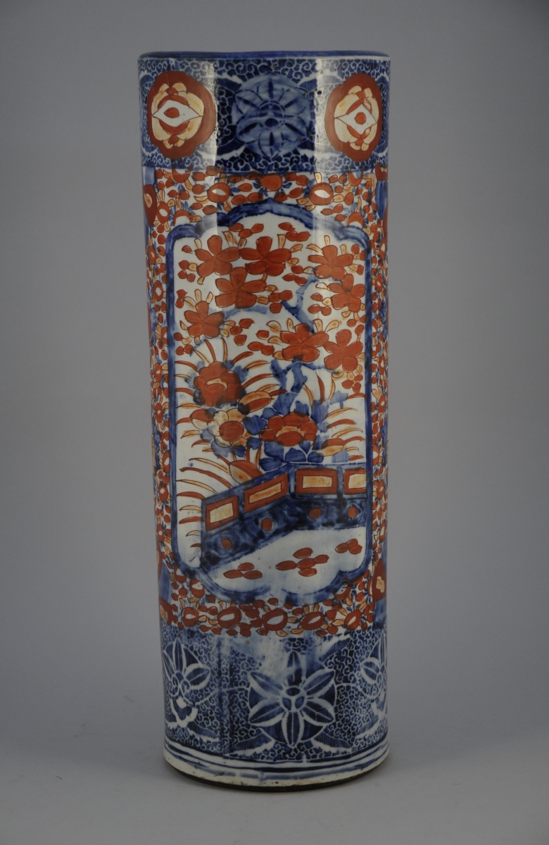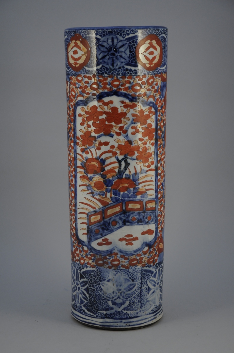 Grand VASE de forme cylindrique en porcelaine, à décor plein floral.