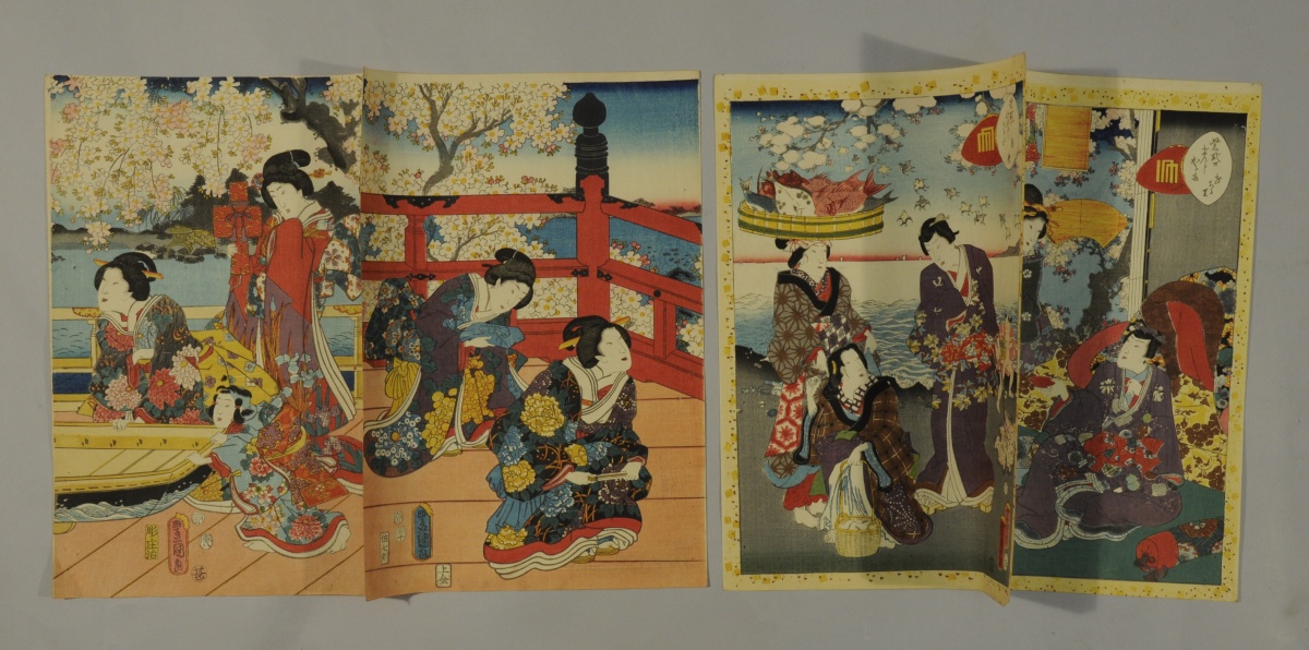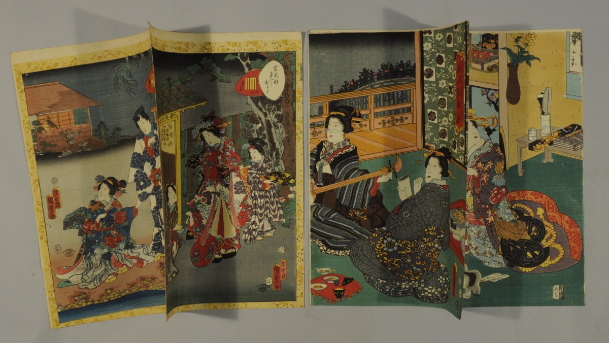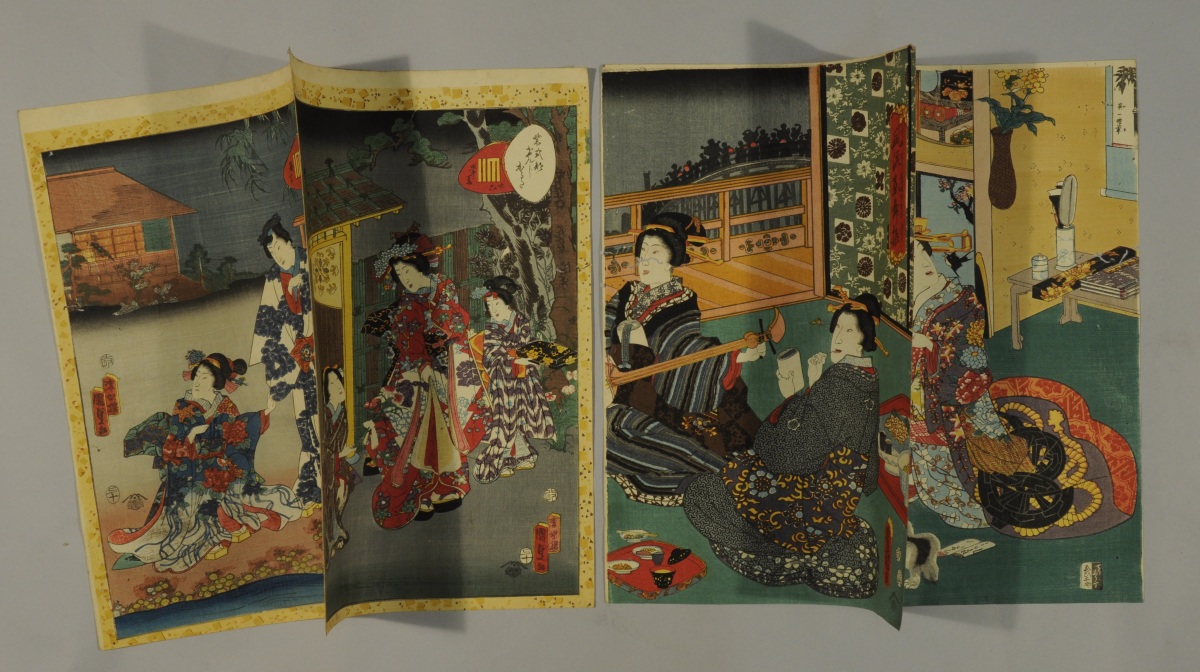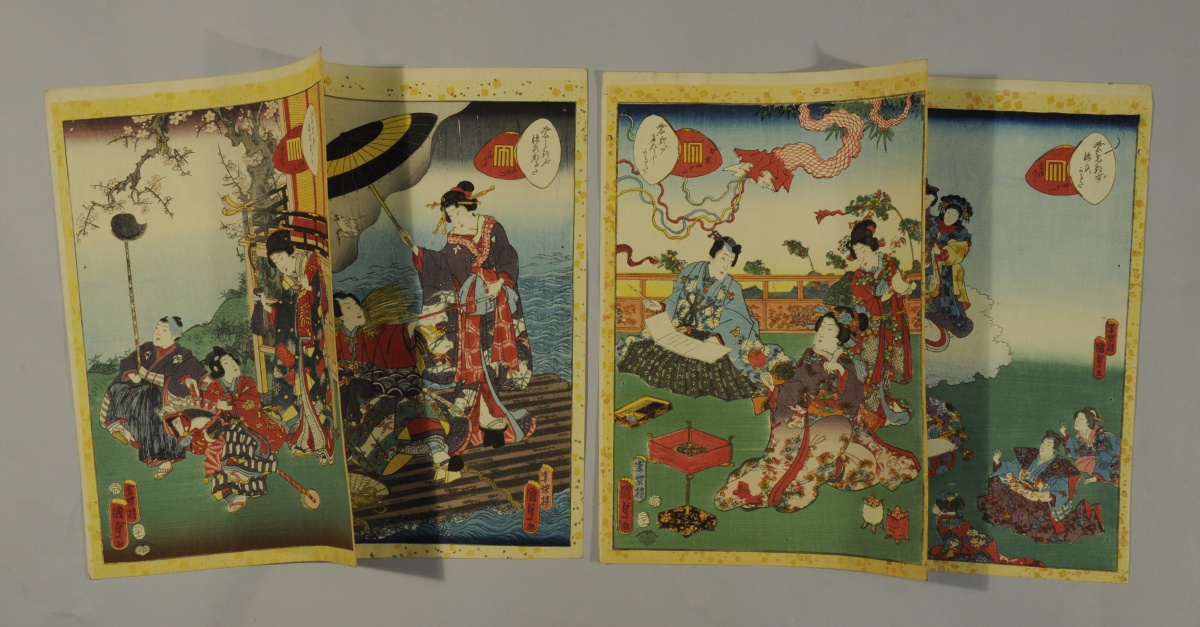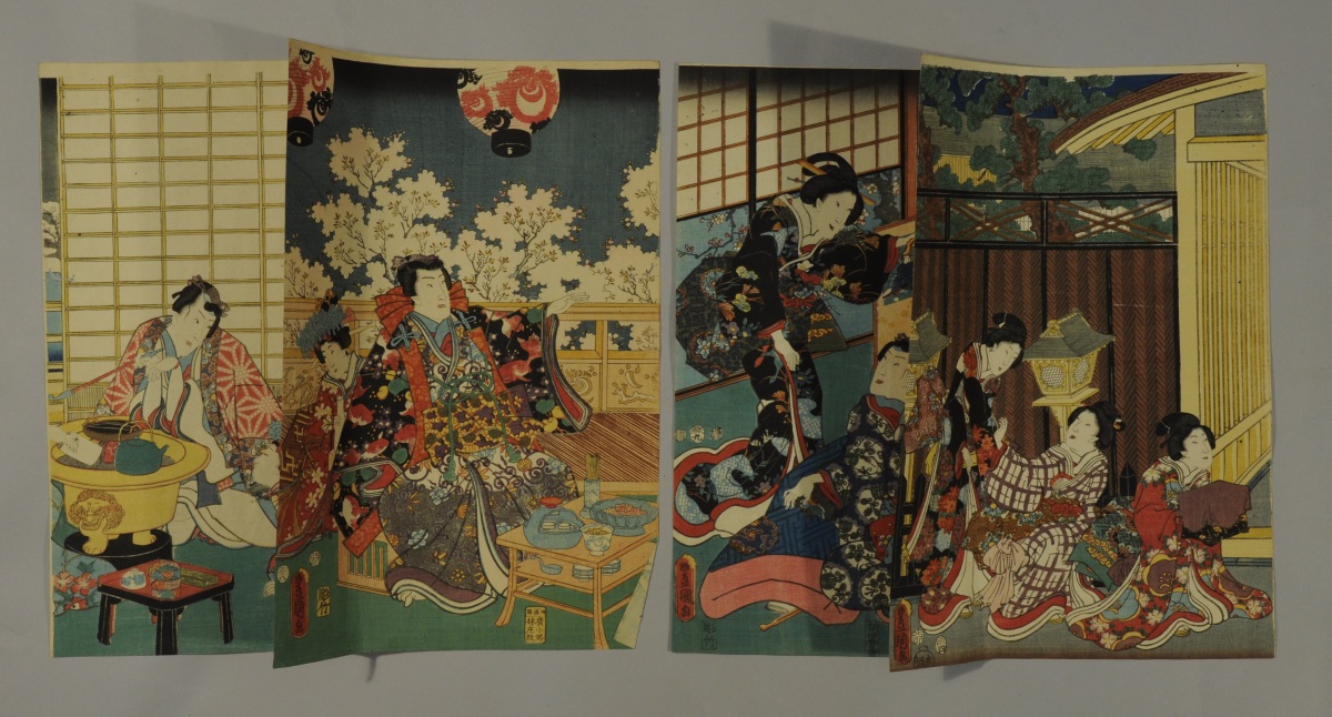 LOT de 29 ESTAMPES japonaises dont par Toyokuni III de la série du Genji Monogatari.