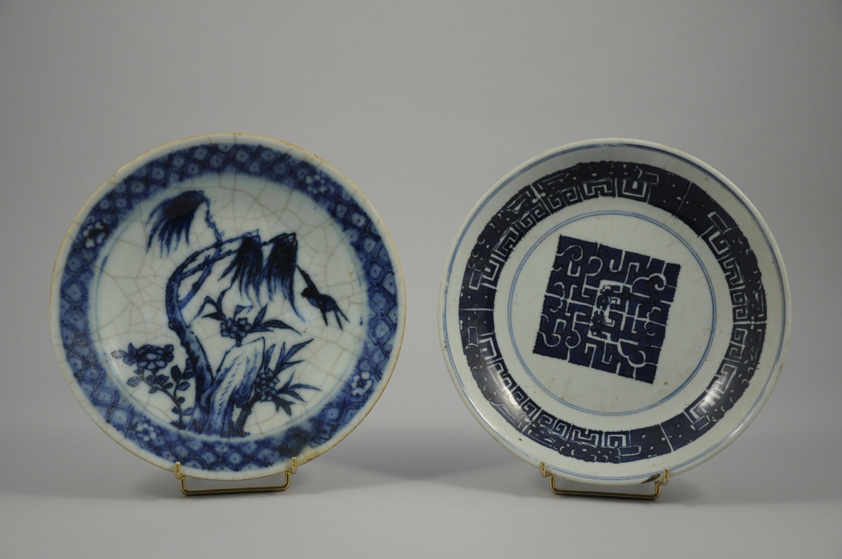 Deux ASSIETTES en porcelaine à décor bleu. L'une de Nankin,...