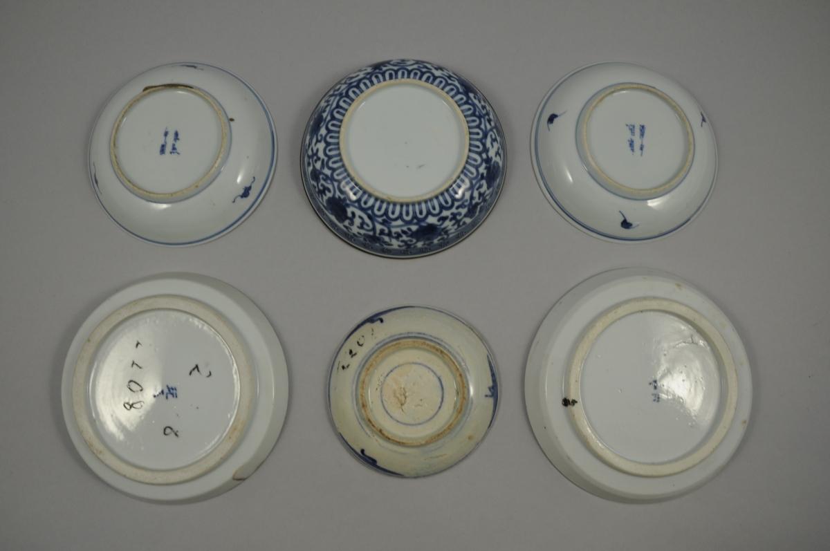 Réunion de SIX SOUCOUPES en porcelaine. Vietnam, Hue, XIXème. Diam....