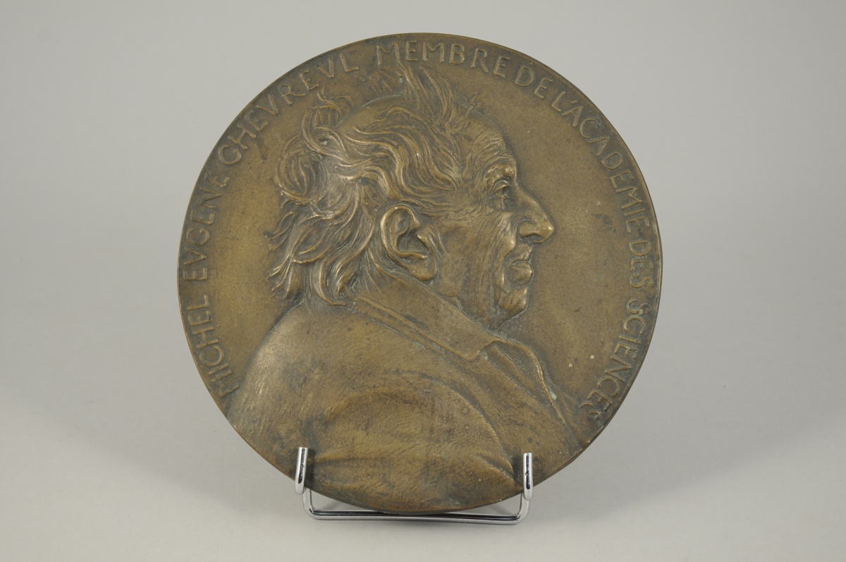 MEDAILLON EN BRONZE à patine médaille à l'effigie de profil de "Michel Eugène Chevreul. Membre de l'Académie des Sciences".