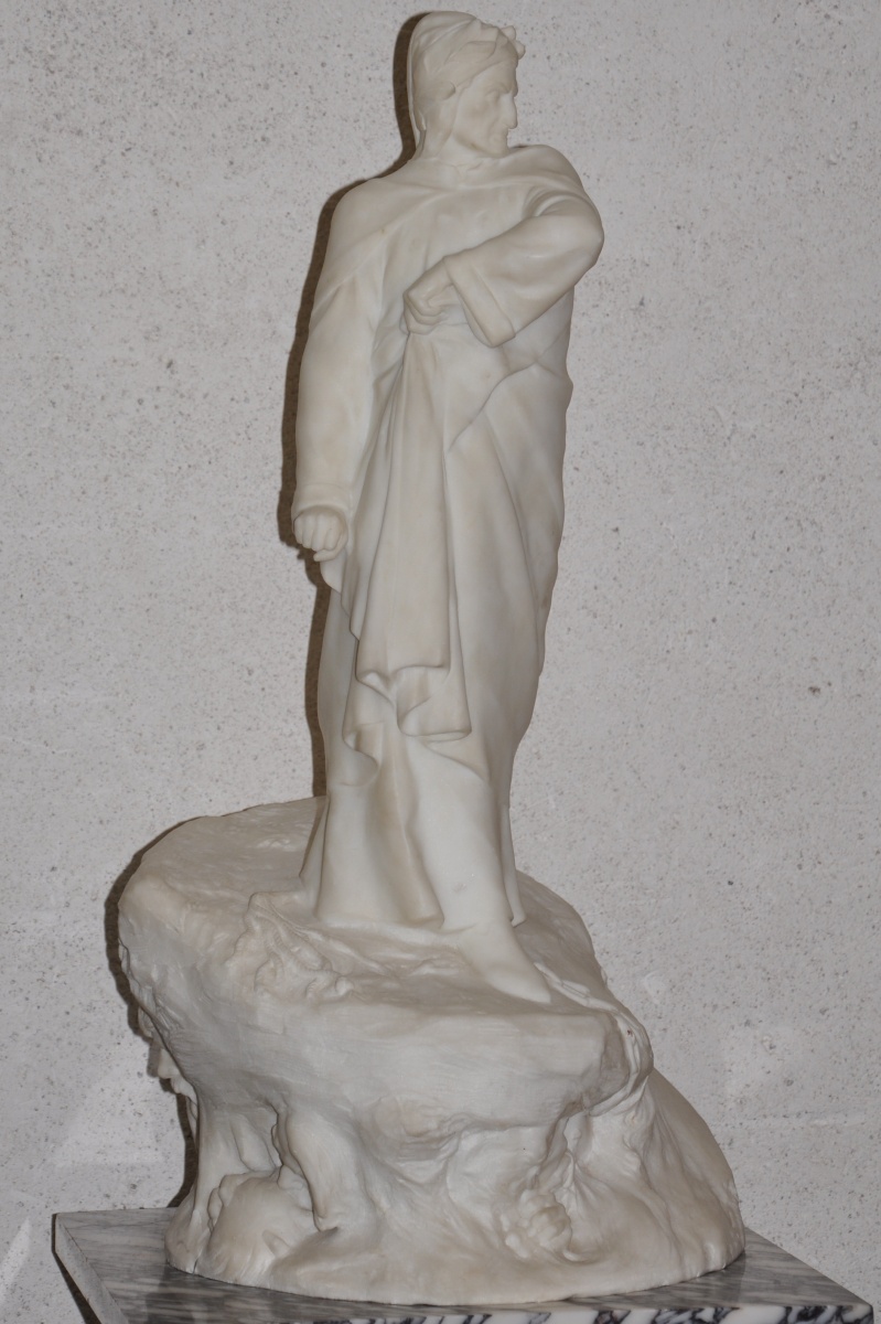 Dante aux Enfers. Sculpture en marbre blanc. Signé. Haut. 78, Larg. 37, Prof. 43 cm (éclat)