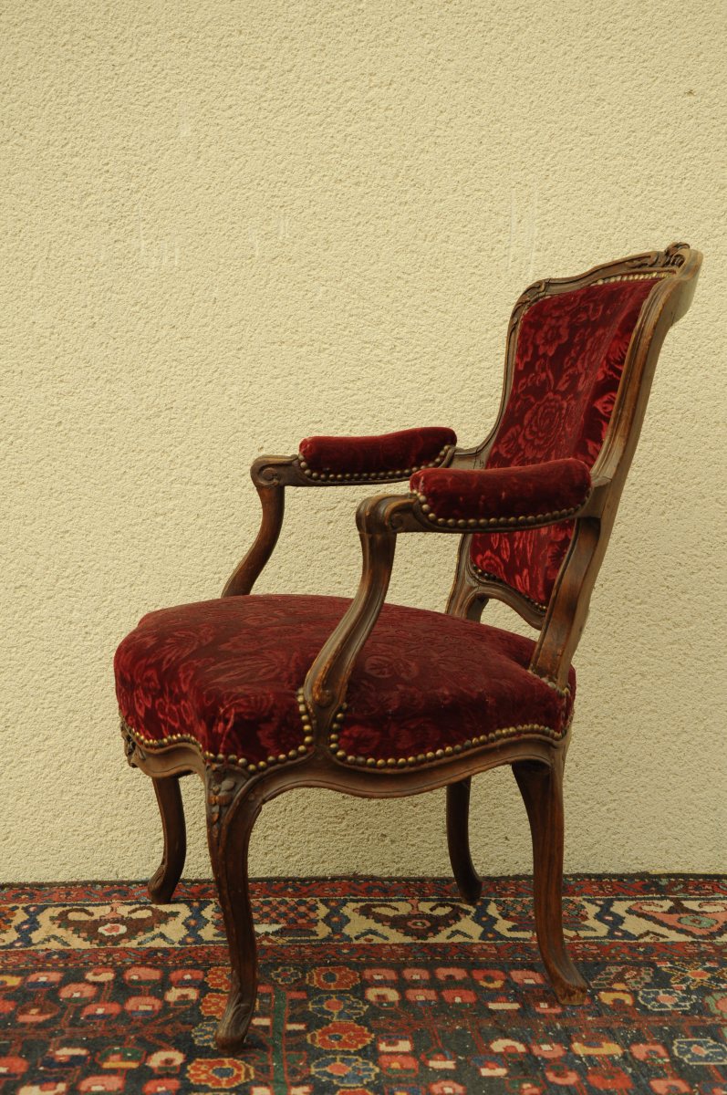 FAUTEUIL cabriolet en hêtre sculpté, mouluré et teinté. Le dossier en chapeau de gendarme est légèrement cintré et flanqué de feuilles d'acanthe. La traverse inférieure du dossier à motif d'un fleur d'acanthe. Les accotoirs en fort coup de fouet. Les traverses centrées d'un bouquet de fleurs. Ils reposent sur des pieds cambrés à décor d'une fleur et terminés par des feuilles d'acanthe. Estampille du menuisier François REUZE.