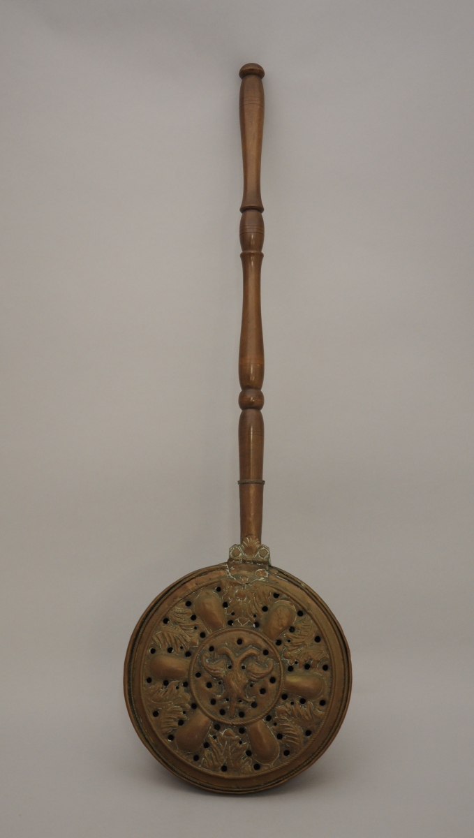 BASSINOIRE en cuivre repercé. Décor au repoussé d'un aigle à deux têtes, entouré de godrons et de feuillages.
