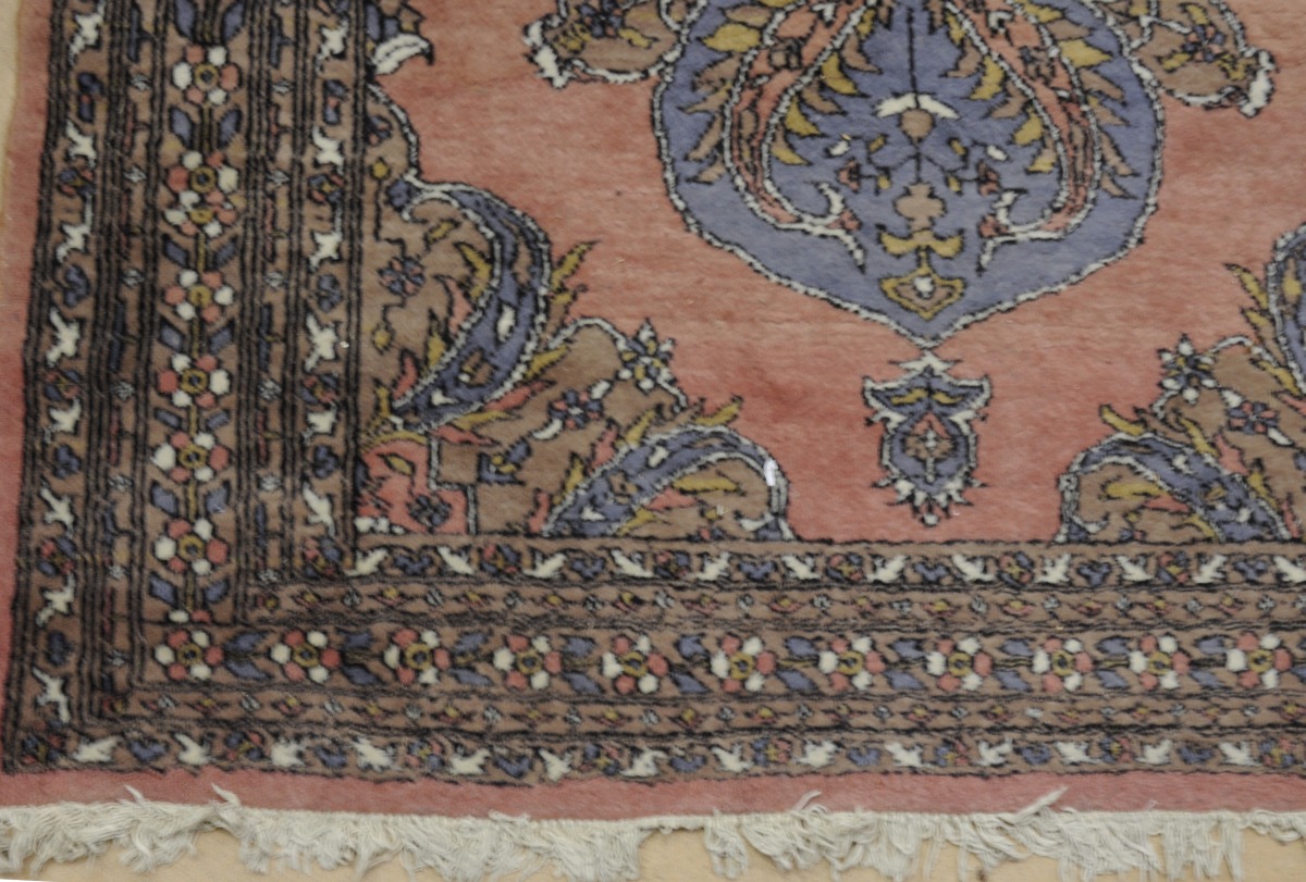TAPIS d'Orient en laine à points noués, à décor persan, médaillon central sur fond rose. Long. 192 Larg. 130 cm.