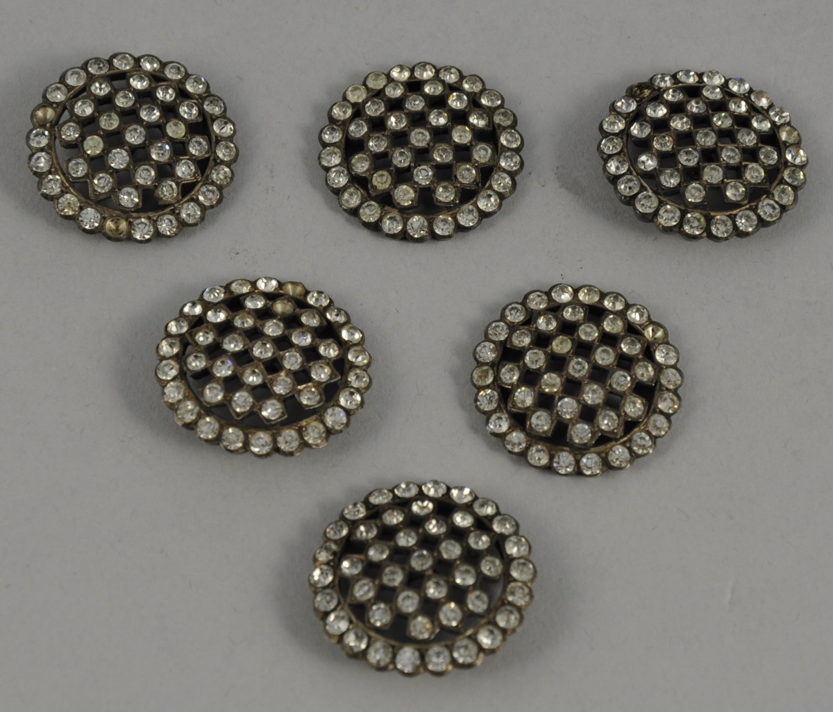 ENSEMBLE de SIX BOUTONS ronds en argent et strass à...