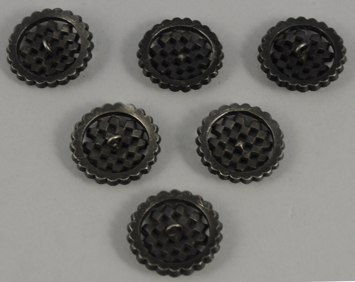 ENSEMBLE de SIX BOUTONS ronds en argent et strass à décor figurant un damier ajouré.
