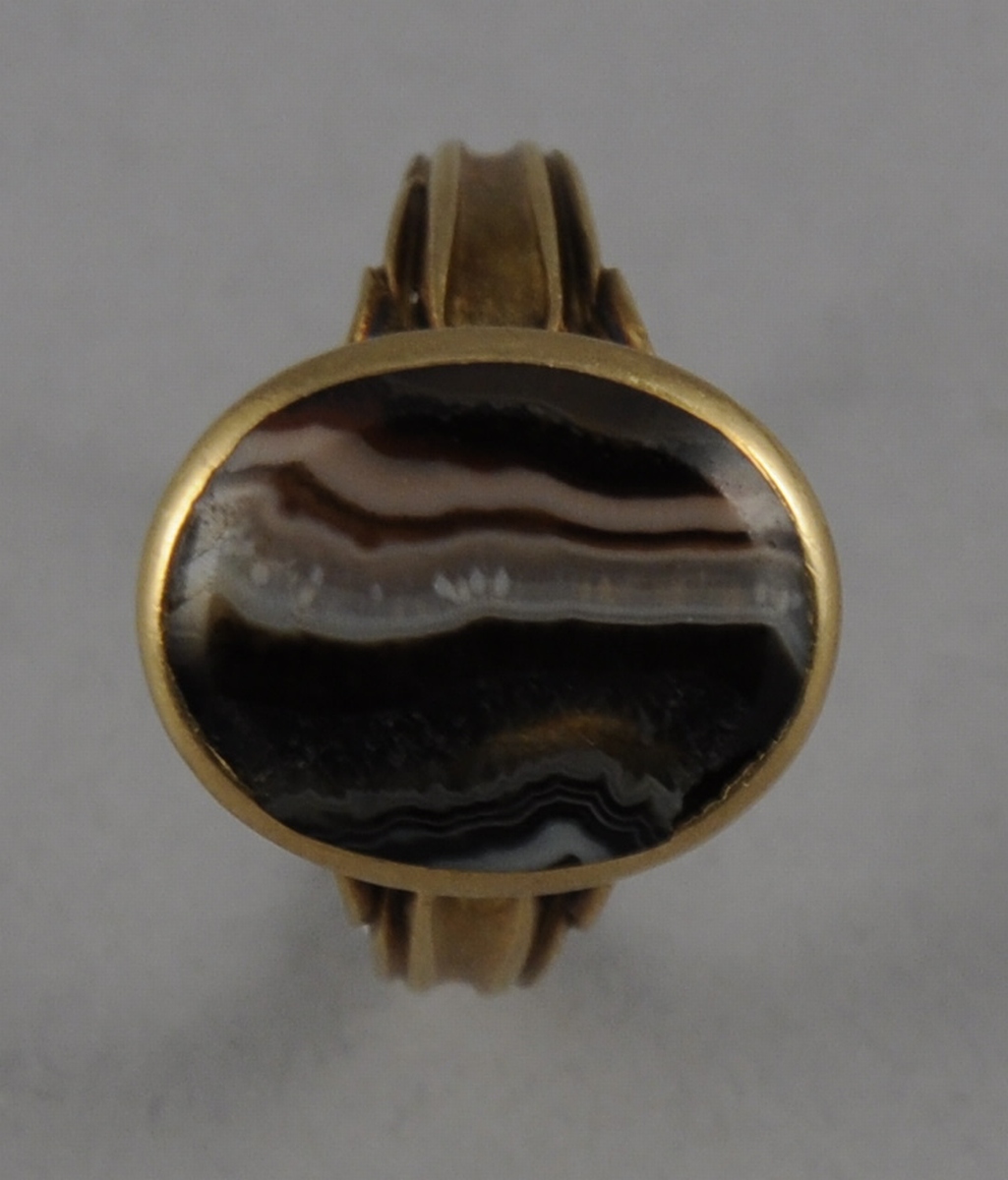 BAGUE en or ornée d'une calcédoine ovale en serti clos.