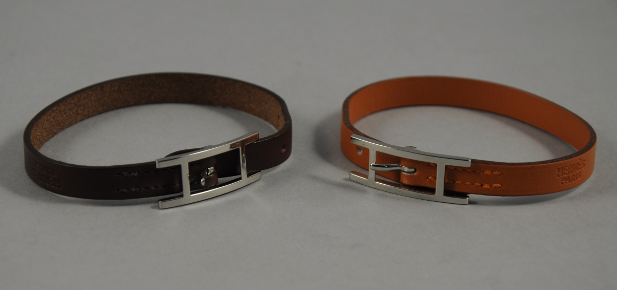 HERMÈS. Deux liens en cuir, l'un marron et l'autre brun....