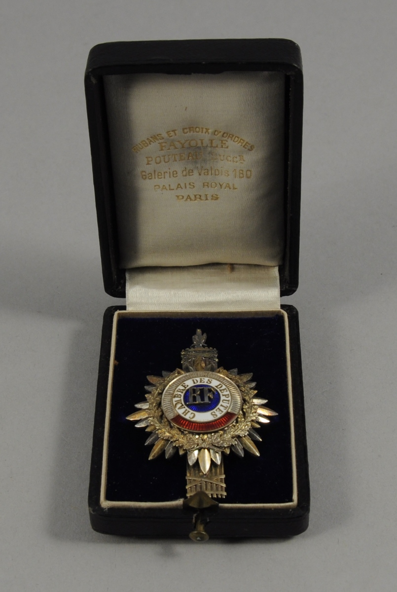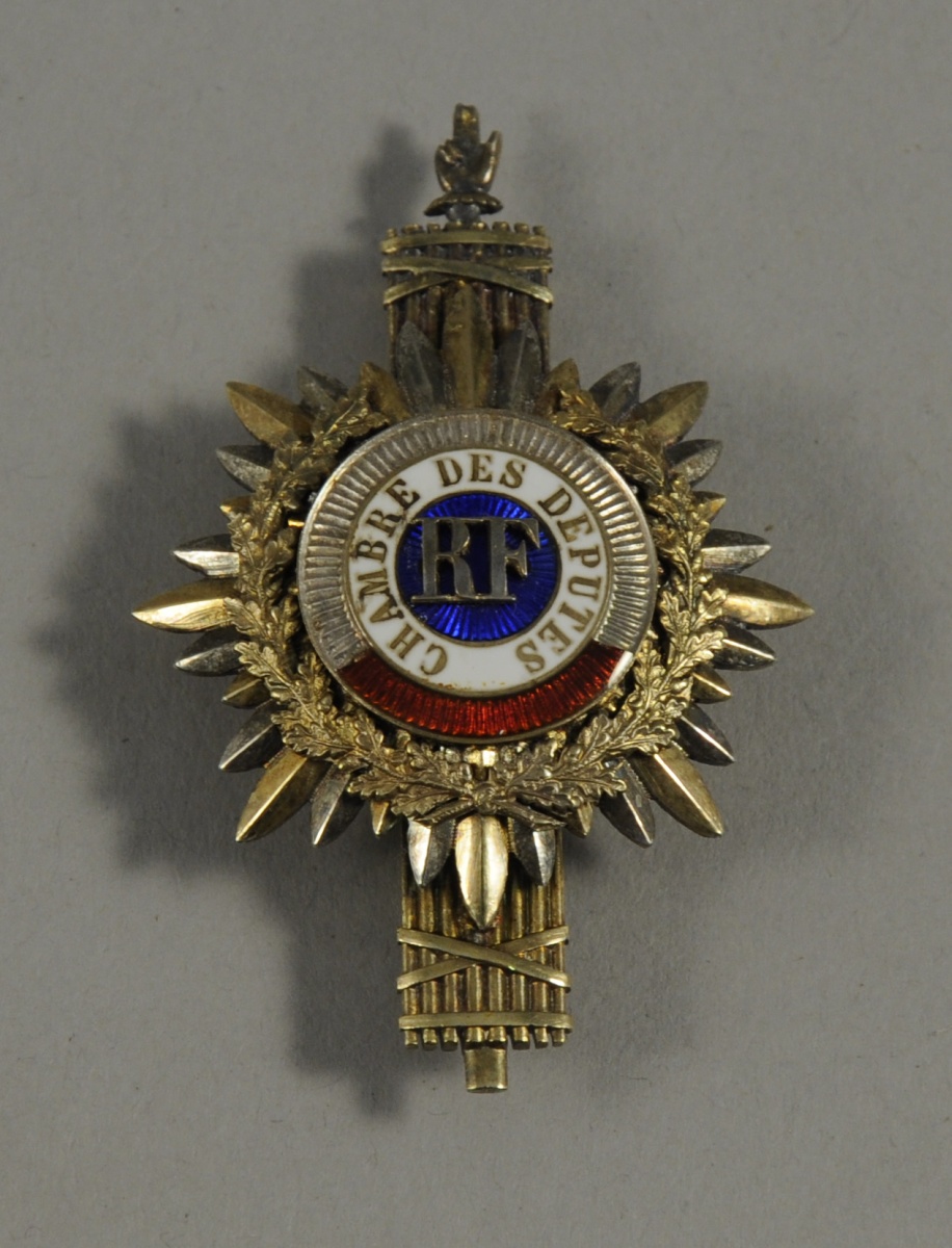 FRANCE. CHAMBRES DES DEPUTES. Baromètre député, en argent et émail. IIIème République. Dans sa boîte, signée Fayolle, Paris.